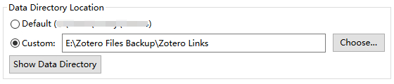 Zotero 默认把文件存在C盘,但可以改。打开’Edit/Preferences/Advanced/Files and Folders’,更改’Data Directiory Location’。注意目录文件和文献信息的存放位置将同时更改。上一个“Linked Attachment Base Directory”就是软链接指向文件的存放位置,可以不管。